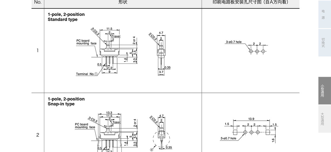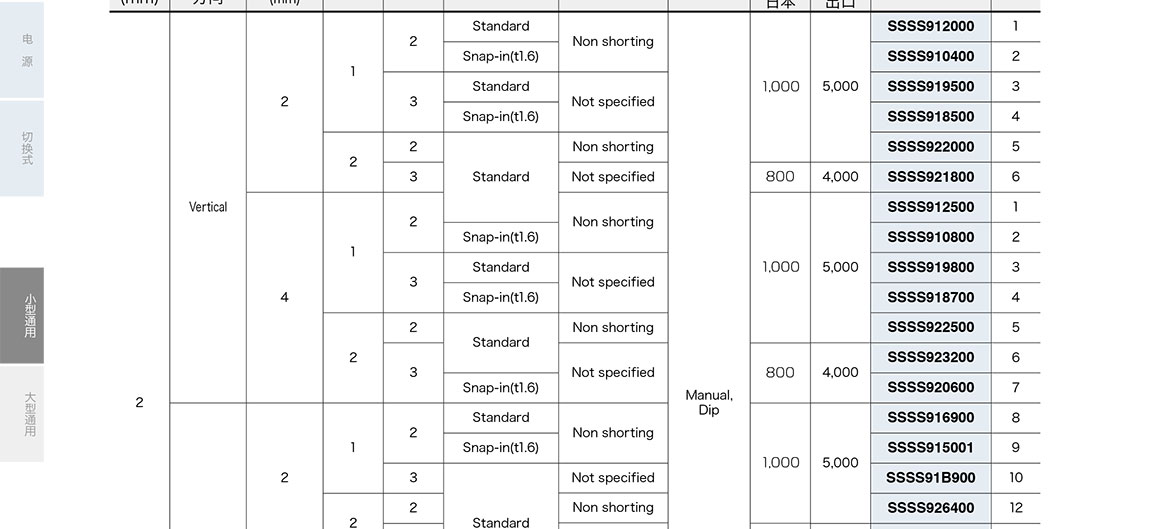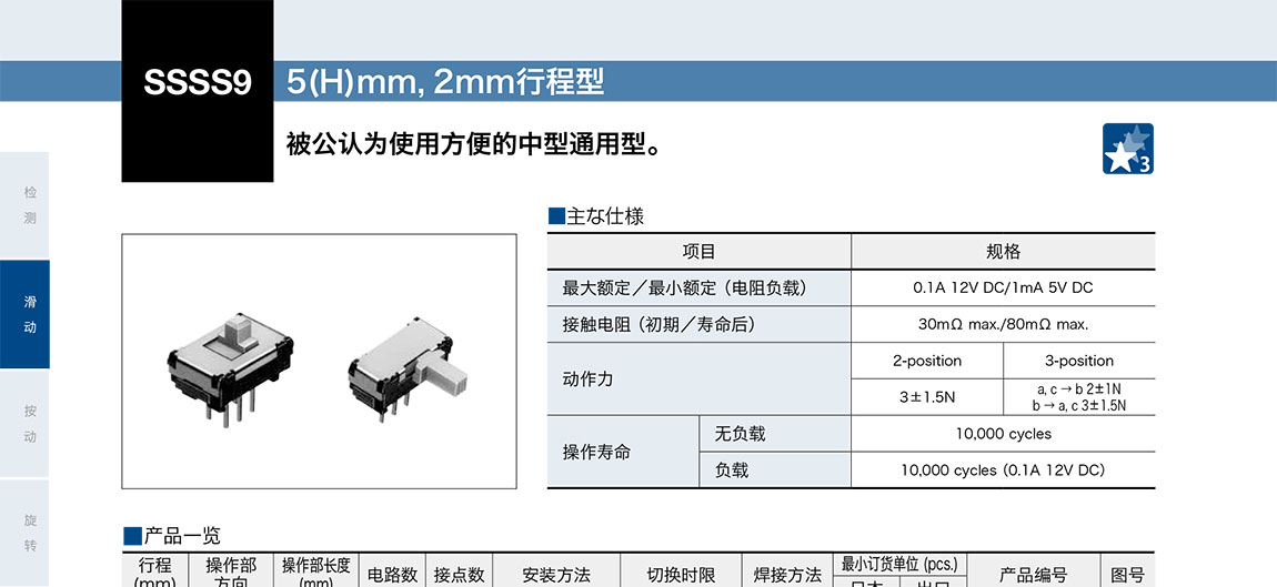 ALPS滑動開關SSSS9系列