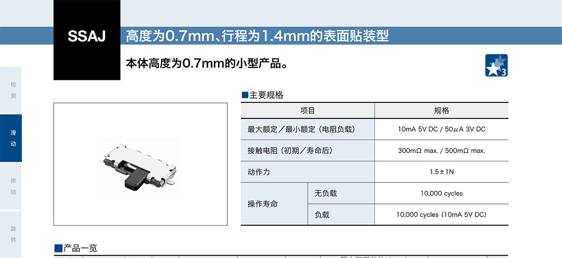 ALPS滑動開關SSAJ 系列