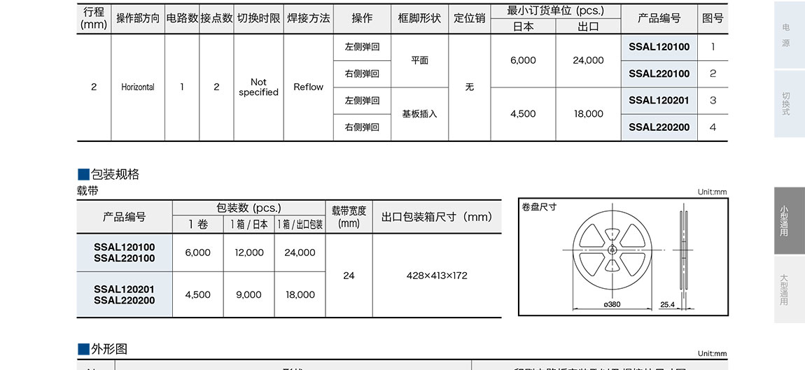 ALPS滑動開關SSAL系列