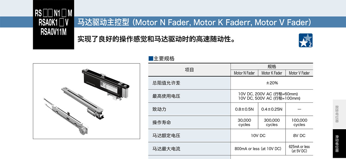 ALPS滑動電位器RS**N1*M/RSA0K1*V系列
