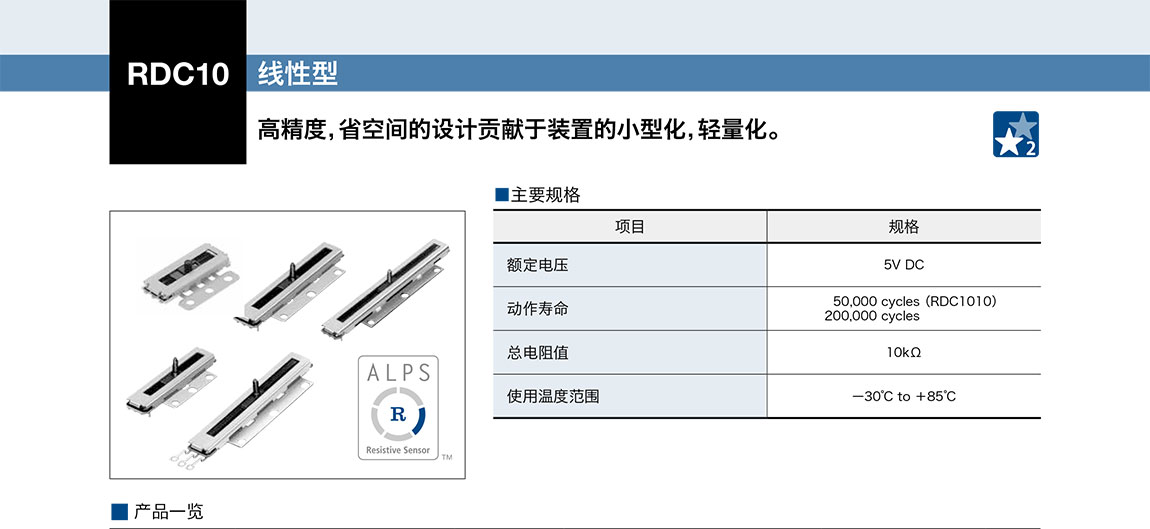 ALPS電阻式位置傳感器 RDC10系列