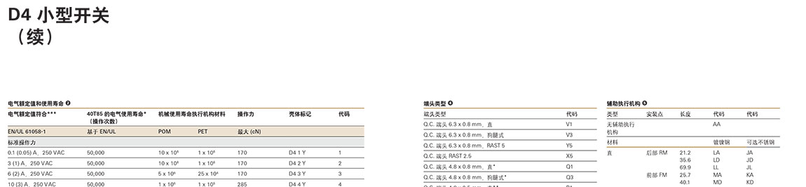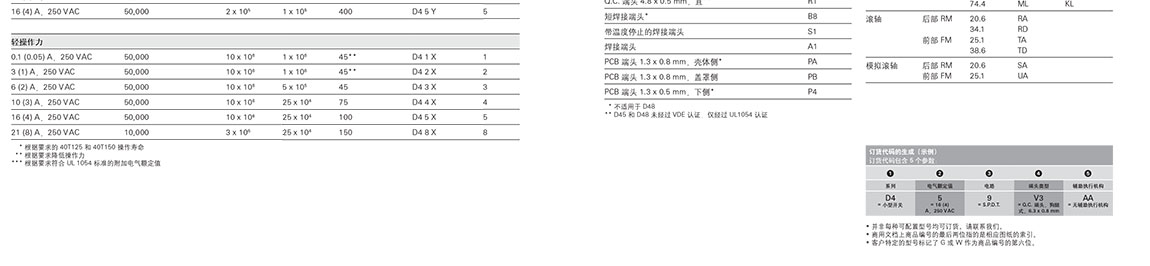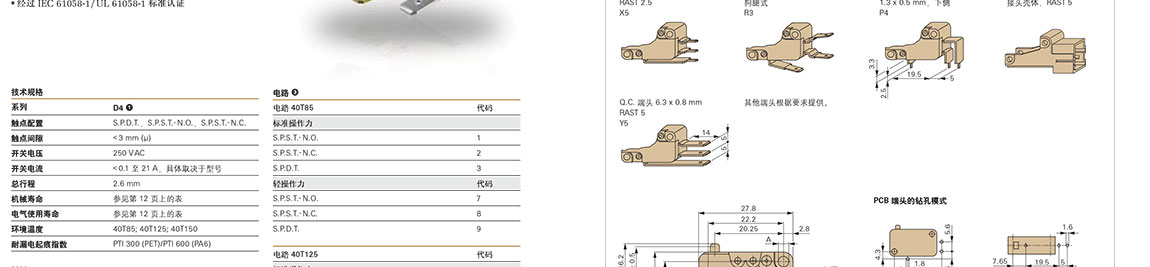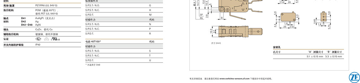 ZF速動微型開關微型 D4 系列